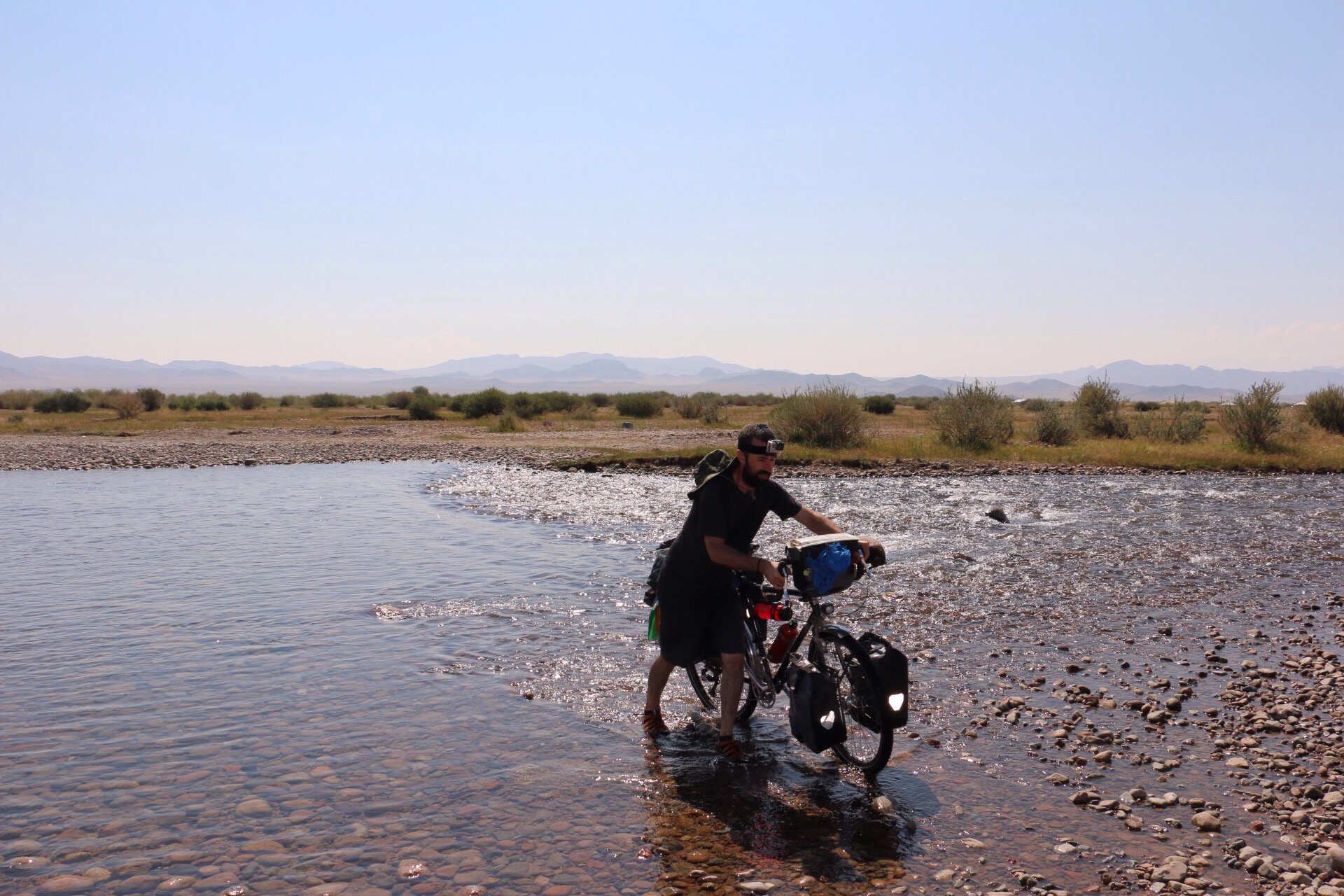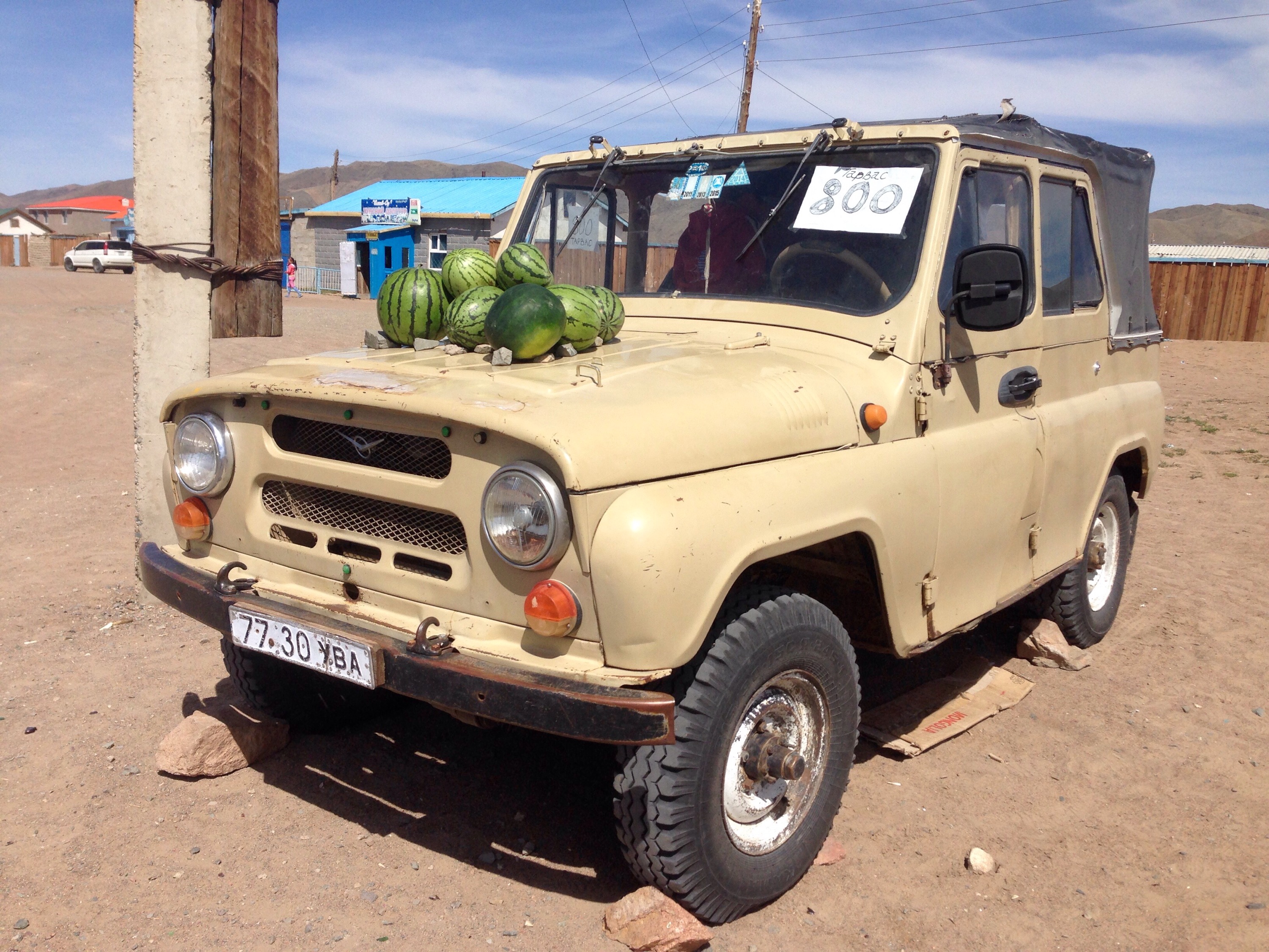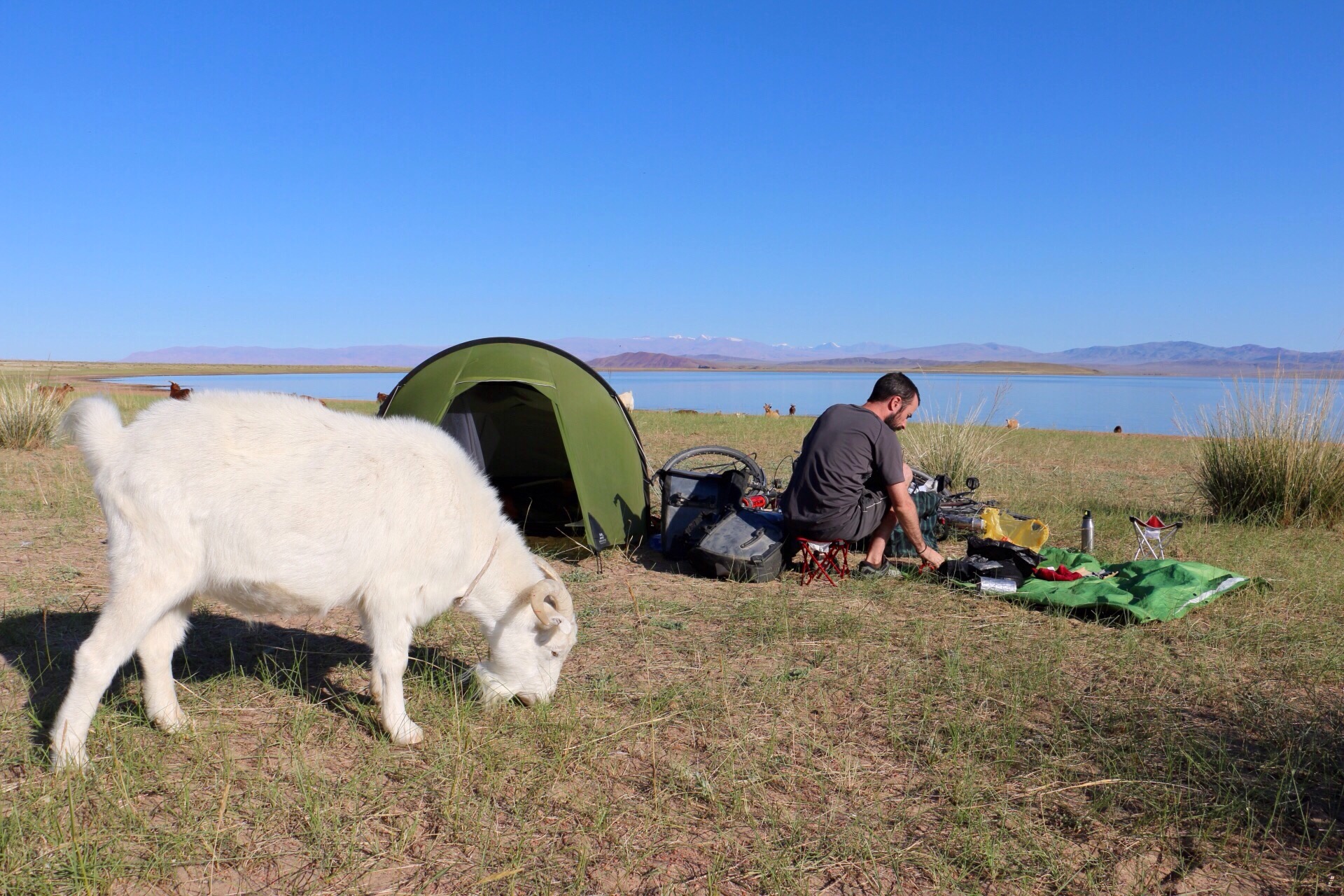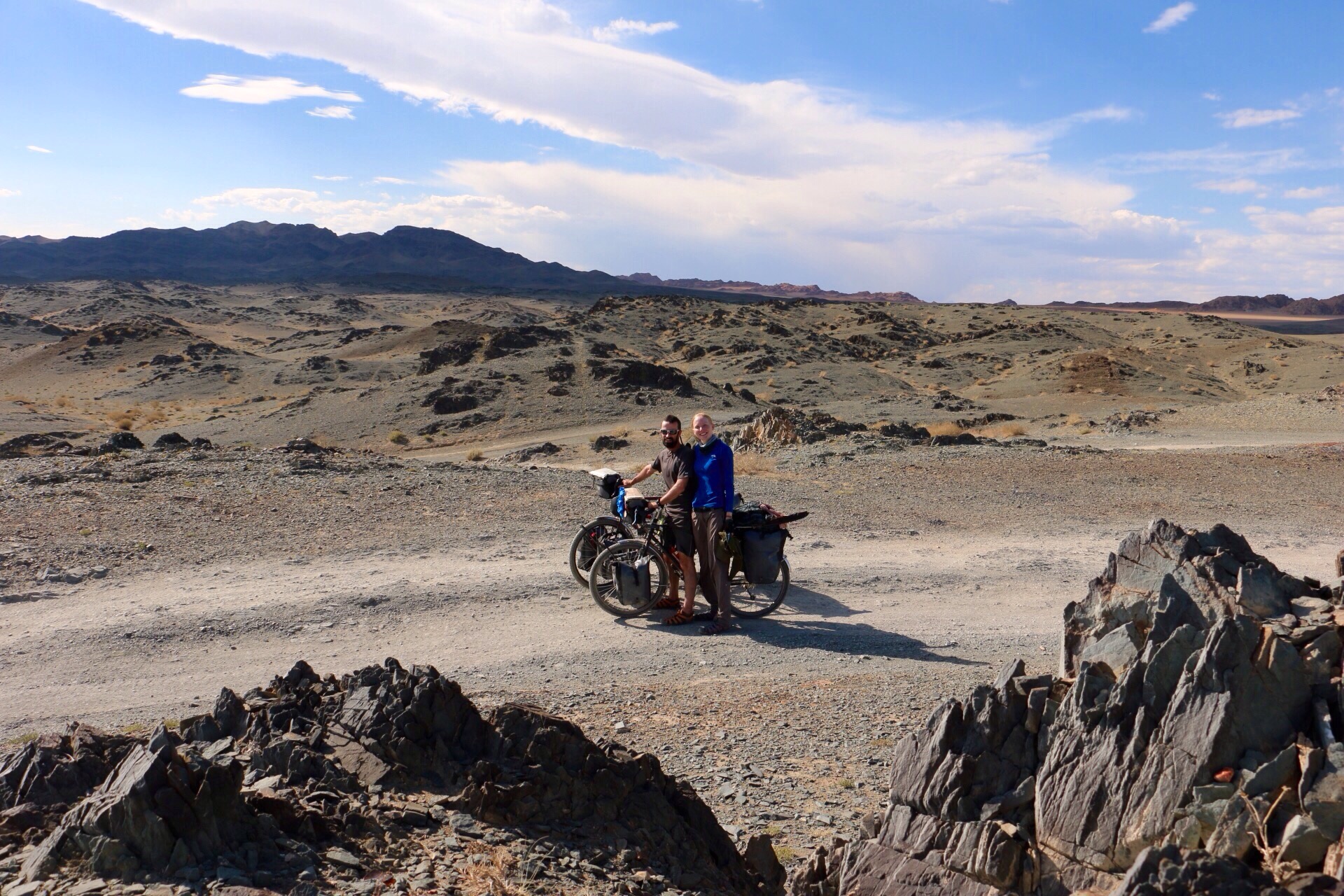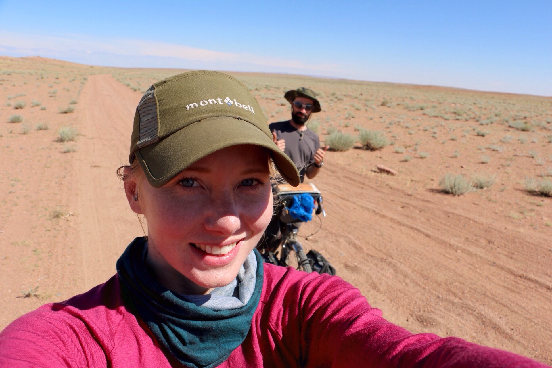 All set for the desert. I’ve managed not to get sunburnt yet which is a miracle. Achitt Nuur in the background.