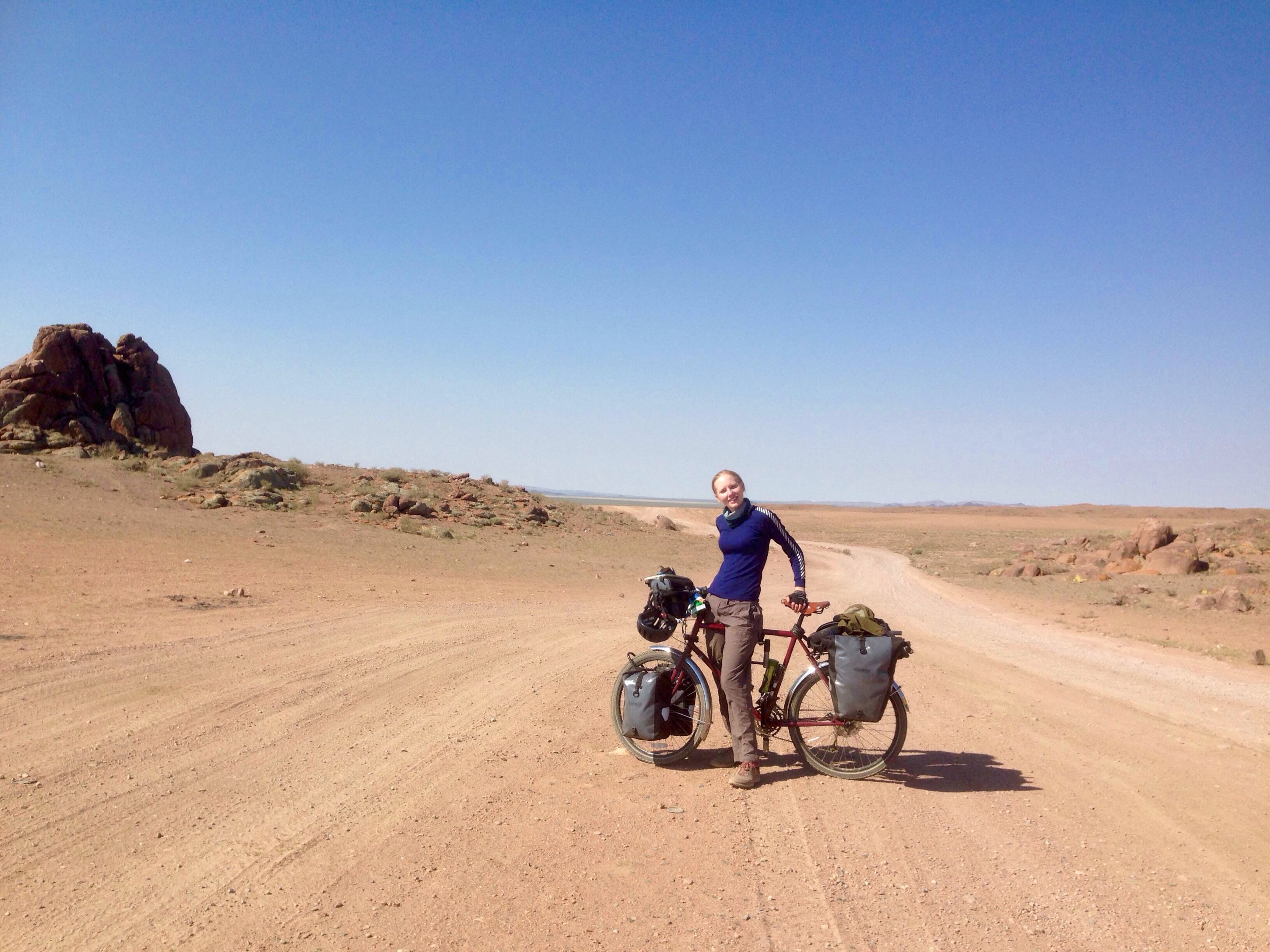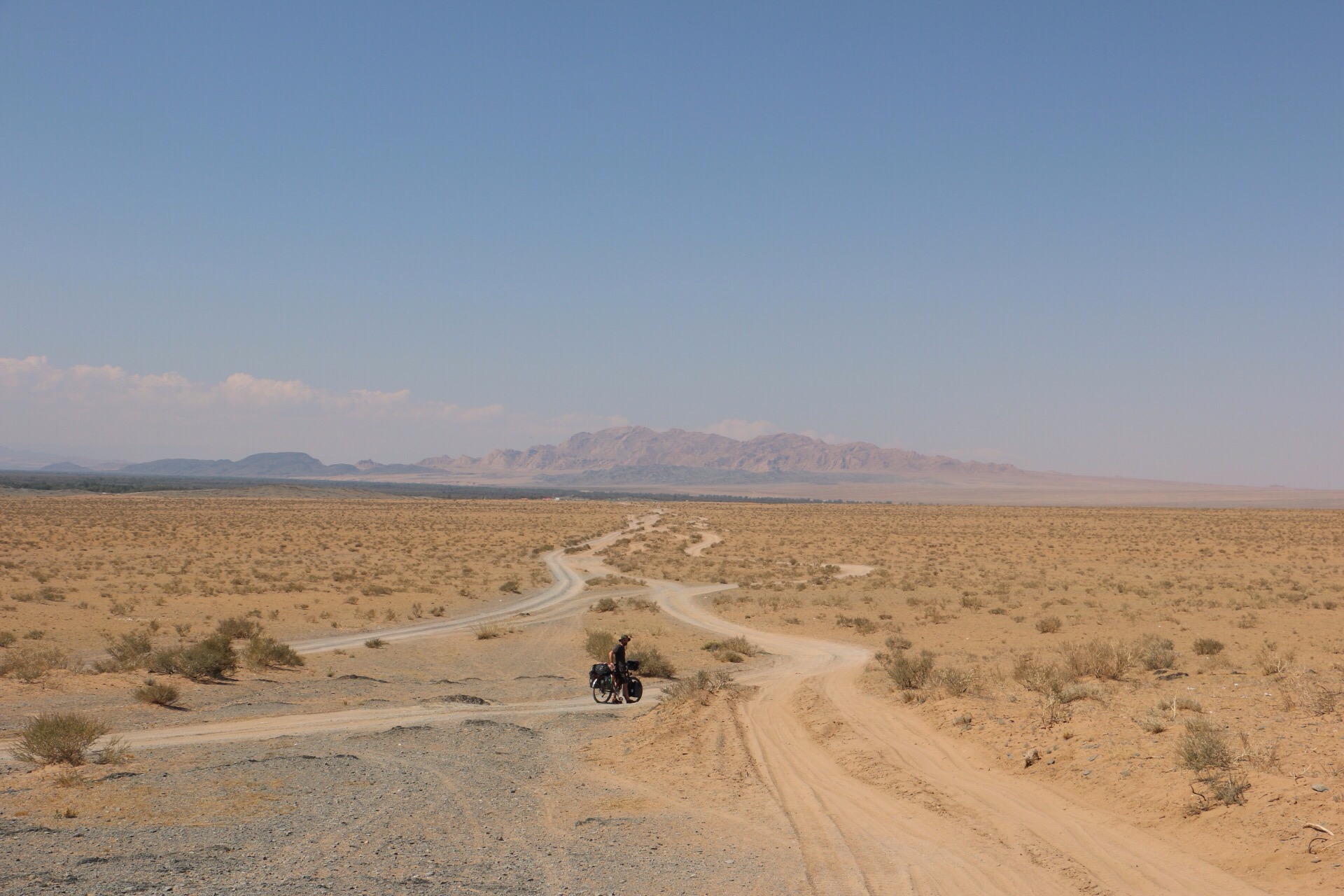 Cycling a desert track in Mongolia. Cycle tour of Mongolia | Crank and Cog.
