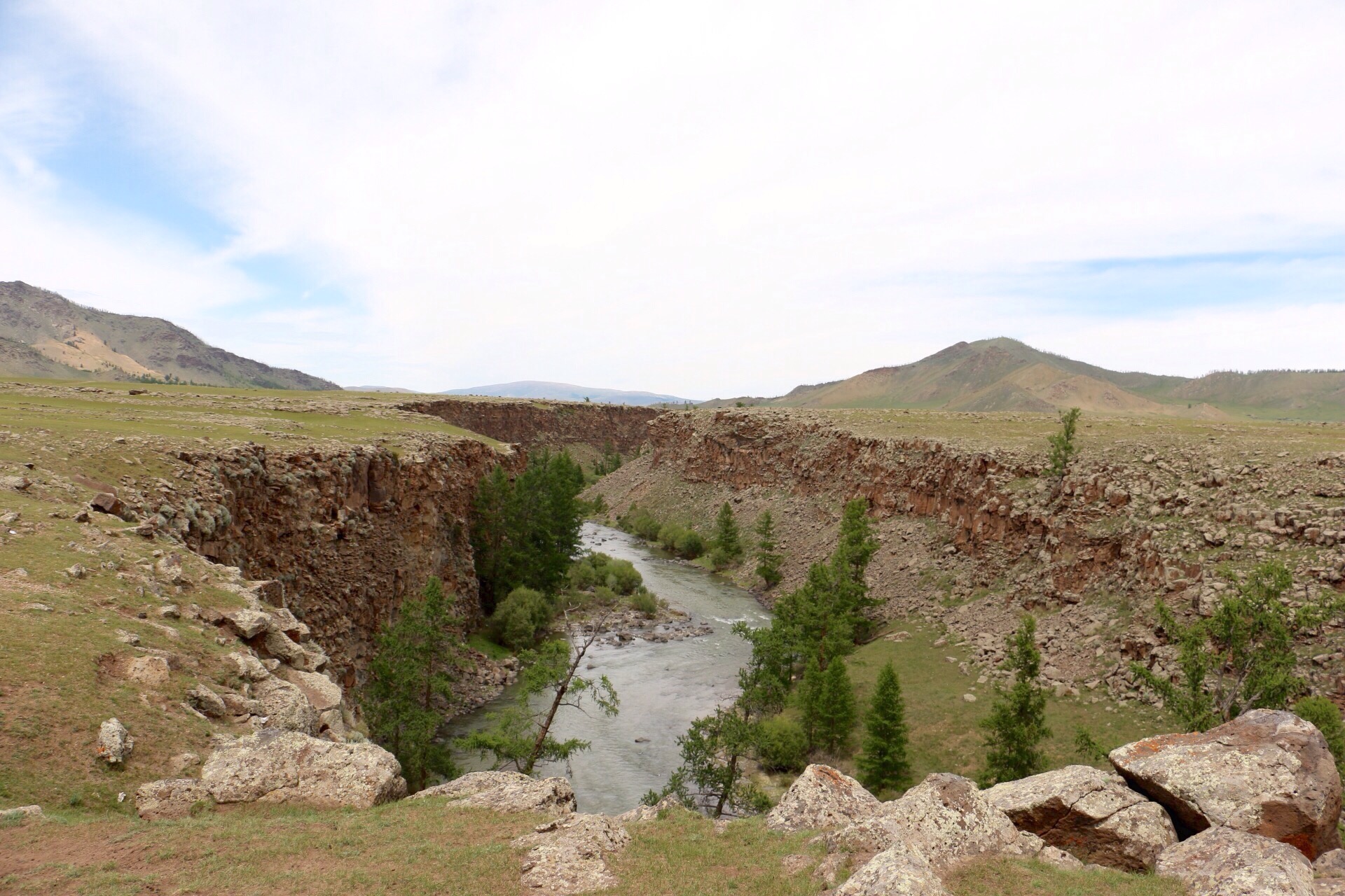 Had lunch at Tuulut gorge which we followed for a good few kilometers. Arrived at Terkhiin Tsagaan lake national park and camped with a view of the volcano.