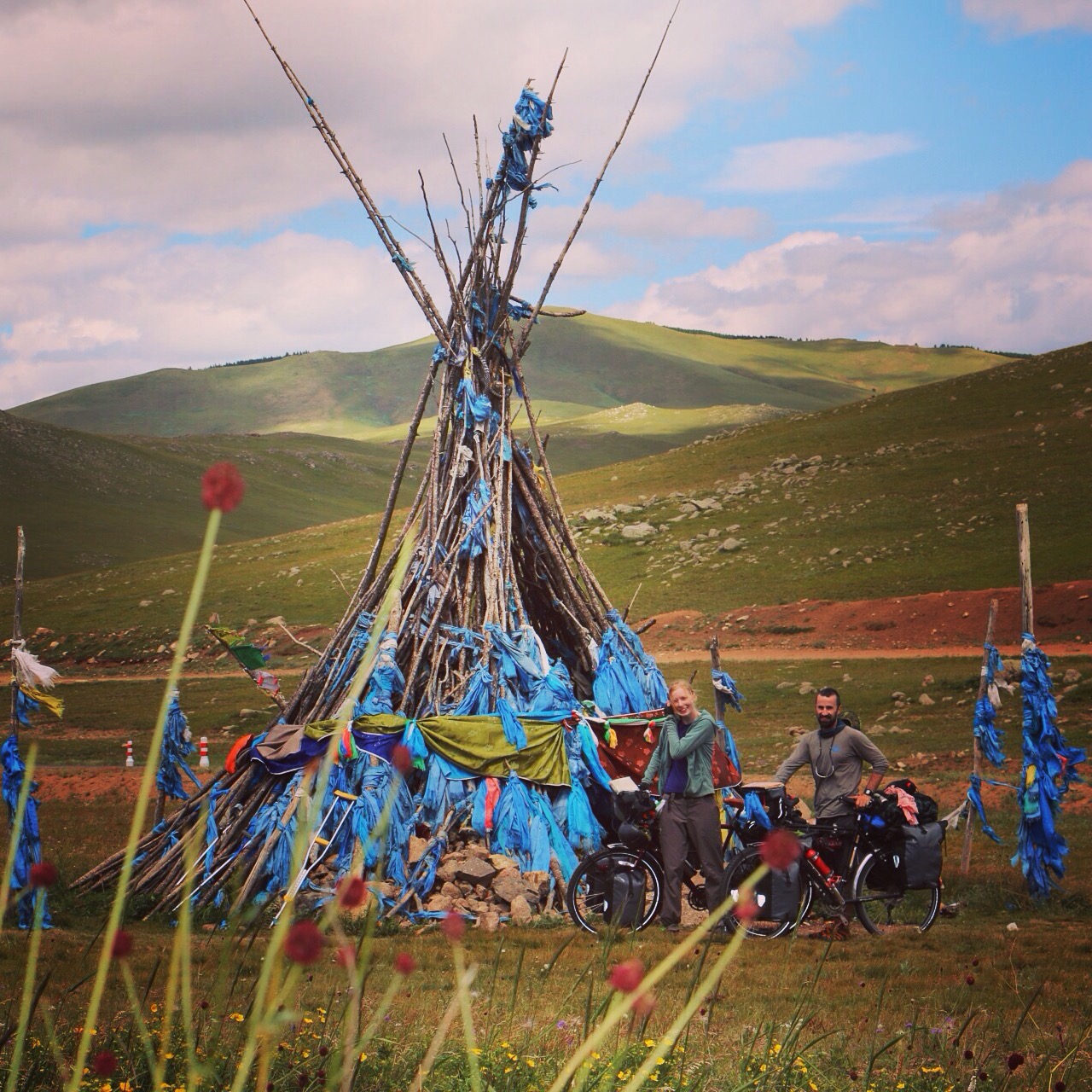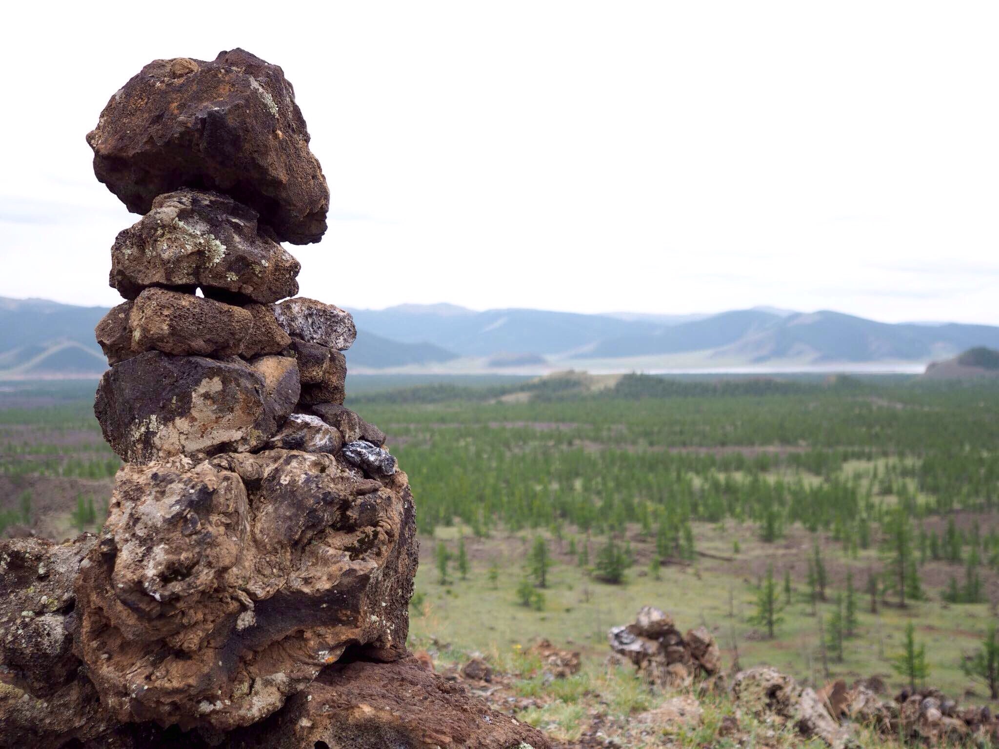 This is an ovoo, a sacred cairn found on mountain passes. We usually avoid them because they are littered with broken vodka bottles.